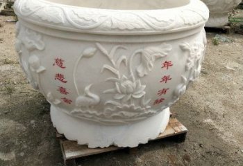 漢白玉石雕龍浮雕水缸雕塑,以漢白玉為原料,以石雕、浮雕和雕塑技術為手段,以龍為主題,精雕細琢而成。雕塑表現(xiàn)出龍的神韻,石雕浮雕的紋理自然優(yōu)美,漢白玉的質感細膩柔潤,水缸的深淺和色澤變化給人以視覺沖擊,色彩明快,構圖精美,實現(xiàn)視覺沖擊與藝術感官的完美結合。
